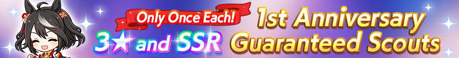 7. The abilities and skills of the Umamusume appearing in the 3★ Guaranteed 1st Anniversary Scout may differ from those of the same characters in Career Scenarios and Career events.
