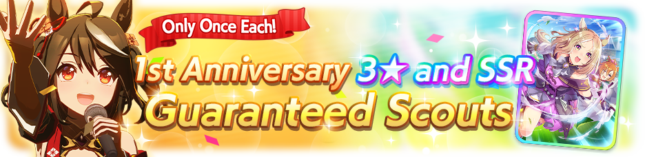 7. The abilities and skills of the Umamusume appearing in the 3★ Guaranteed 1st Anniversary Scout may differ from those of the same characters in Career Scenarios and Career events.