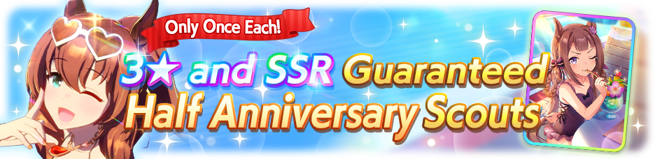 4. You will not obtain Trainee Exchange Points or Support Card Exchange Points for scouts on the 3★ Guaranteed Half Anniversary Scout or SSR Guaranteed Half Anniversary Start Scout.