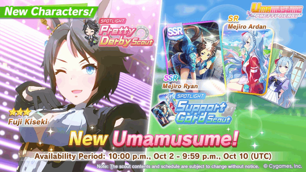 Keep in mind that Support Cards released after their banner ends wil be added to the pool of SSRs in the next banner. This also means that for future banners, the odds of obtaining a specific SSR off banner becomes extremely difficult.