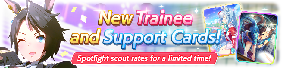 During the Spotlight period, scout rates for Spotlight Trainee Umamusume and Support Cards are increased!