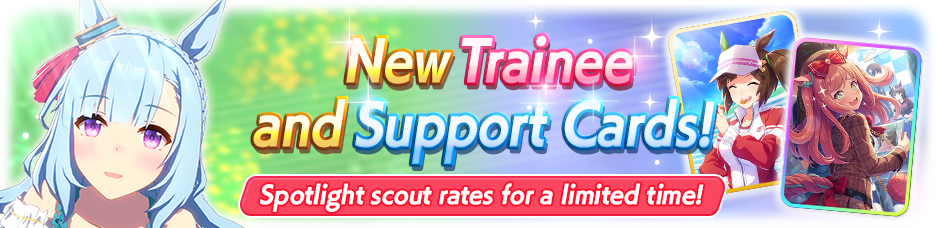 During the Spotlight period, scout rates for spotlighted Trainee Umamusume and Support Cards are increased!