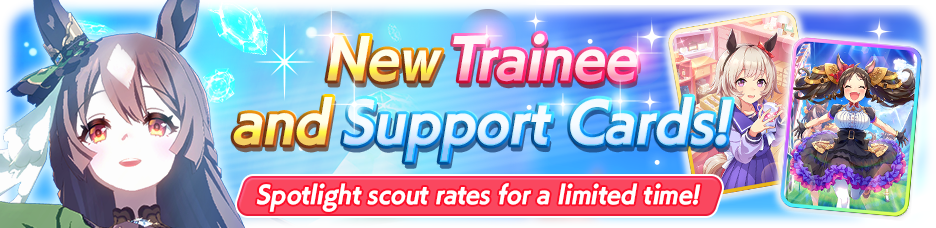 During the Spotlight period, scout rates for spotlighted Trainee Umamusume and Support Cards are increased!
